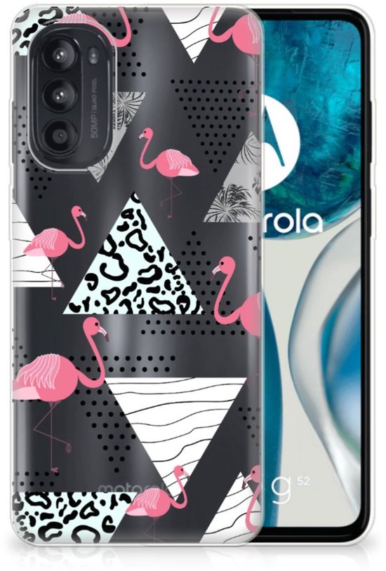 Jolie coque arrière en TPU Motorola Moto G52/G82, étui de téléphone portable, Triangle Flamingo transparent