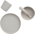 L'ensemble de vaisselle pour enfants se compose d'une assiette, d'une tasse, d'un bol et d'une cuillère et est composé à 100 % de silicone. 100% sans BPA, PVC et PHTALATES.