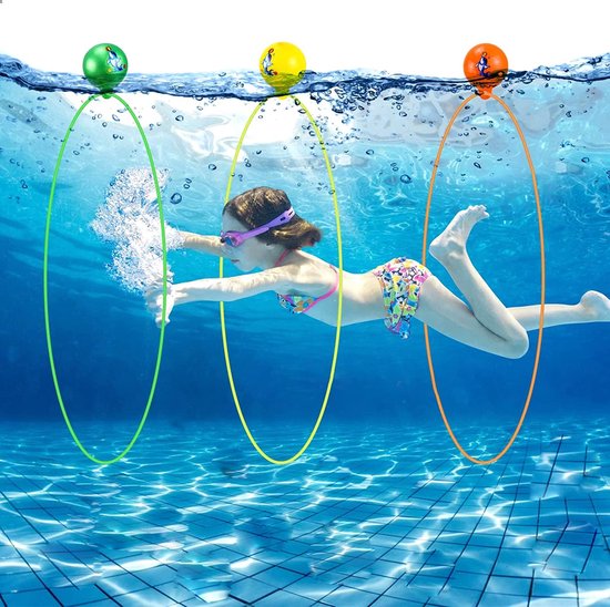 - Anneaux de piscine pour enfants Ensemble de plongée : Les anneaux de plongée sous-marine pour piscine se composent d'anneaux de plongée en 3 pièces dans les couleurs vert, orange et jaune et de ballons en 3 pièces. Le ballon est déjà installé dans l'anneau de natation et comprend également un dispositif de gonflage et un ongle gonflable. L'anneau de natation est pliable et réutilisable. (Pointes: la couleur de l'inflation sera envoyée au hasard.)