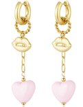 Joy Ibiza - boucles d'oreilles charm coeur - boucles d'oreilles avec pendentif coeur et lèvres - rose tendre - charnière pliante - ear party boho - style bohème - acier inoxydable - plaqué or ip/pvd