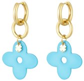 Joy Ibiza - Boucles d'oreilles charms trèfle - boucles d'oreilles avec 2 trèfles - bleu turquoise - charnière pliante - ear party boho - fleur bohème - acier inoxydable - plaqué or ip/pvd