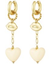 Joy Ibiza - boucles d'oreilles charm coeur - boucles d'oreilles avec pendentif coeur et lèvre - blanc crème - charnière pliante - ear party boho - style bohème - acier inoxydable - plaqué or ip/pvd