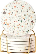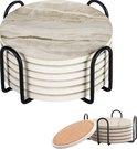 Joya Party® – Set de sous-verres de Luxe en marbre avec support en métal – 6 pièces – Céramique et liège – Absorbant l'eau – Rond – 10 cm