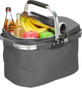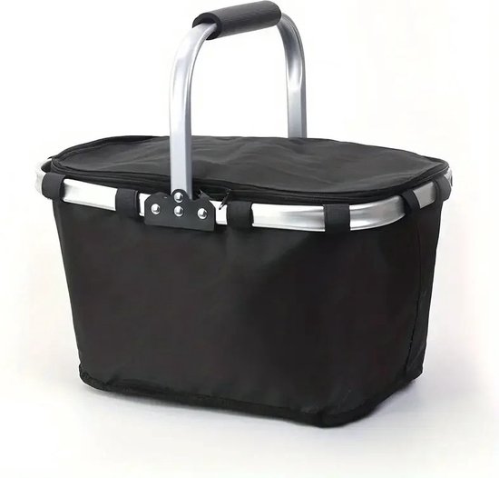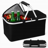 JulianWare Panier de pique-nique pliable - Panier de pique-nique avec compartiment réfrigérant - Sac isotherme pliable - Panier de courses étanche - Sac de pique-nique - Zwart