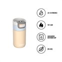 1 : Position de la pression : appuyez sur le bouton de notre tasse thermos pour prendre une gorgée. Fini les déversements lorsque vous vous précipitez à la prochaine réunion ou que vous courez pour attraper votre train.