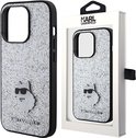 Karl - Lagerfeld - Étui à épingles en métal avec logo Choupette à Glitter fixes pour iPhone - 15 - Pro - Max - Argent