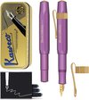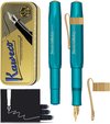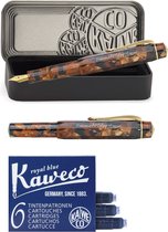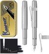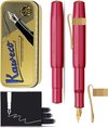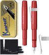 Kaweco Coffret Cadeau - 1 Stylo Plume - Clip Octogonal Nostalgique CHROME - ALUMINIUM SPORT - Aluminium Sport Rouge Profond - EXTRA LARGE - Boîte Vintage - Boîte de Recharges Extra