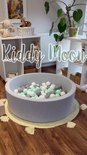 KiddyMoon piscine à balles ronde piscine à balles en velours 90x30cm/200 balles ∅ 7cm piscine à balles pour bébés, piscine de jeu pour tout-petits, fabriquée dans l'UE, vert forêt: turquoise foncé/vert gris/blanc