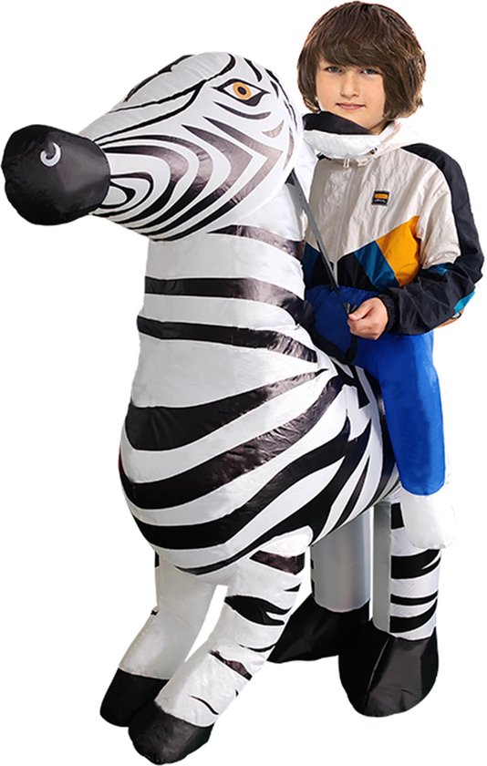 KIMU® Costume Gonflable Enfants Équitation Zebra - Costume Opblaasbaar - Costume Gonflable Mascotte Costume Zèbre - Costume Gonflable Zebra Safari Afrique Cheval Carnaval Carnaval