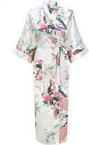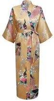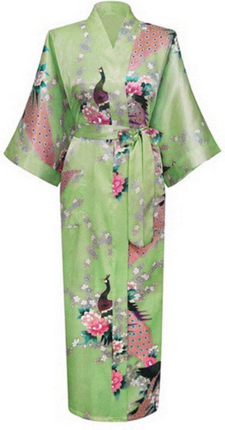 • Kimono de geisha vert clair avec imprimé japonais avec fleurs et paons,