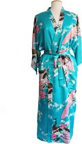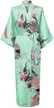 KIMU® long kimono vert clair - taille ML - maxi robe de chambre satin - peignoir long japonais peignoir yukata vert geisha satin