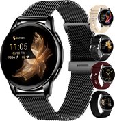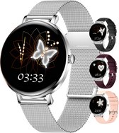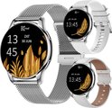 Kiraal Valencia Montre connectée AMOLED pour Femme - Bracelet en Acier Inoxydable, Cuir et Siliconen - Multisport - Moniteur de Sommeil - Podomètre - Moniteur de Fréquence Cardiaque - Compatible avec Android et iOS - Argent et Wit