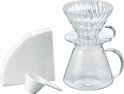 Ensemble Hario composé d'un dripper en verre V60-02, d'un serveur en verre avec 40 filtres en papier. C'est un moyen idéal pour commencer votre aventure avec les méthodes de brassage par versement. Idéal pour préparer du café à la maison.