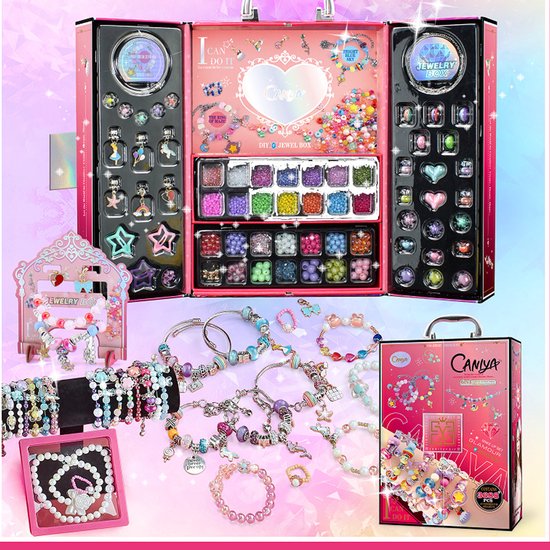 Kit de création de bijoux pour filles - 20 couleurs - 3688 - Sets joaillerie - Pièce - Kit de création de Bijoux scintillants - Set de Perles - Boîtes de bricolage couture pour Enfants - Convient aux filles à partir de 6 ans