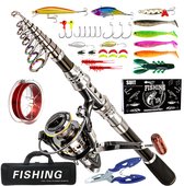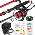 Kit de pêche - Cadeau - Ensemble de pêche - Canne à pêche télescopique - Canne à lancer - Kit de pêche portable pliable - Débutant - Rouge