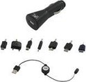 kit téléphonie mobile comprenant un chargeur allume-cigares USB, un câble rétractable USB Tug'n Block et 7 connecteurs interchangeables :