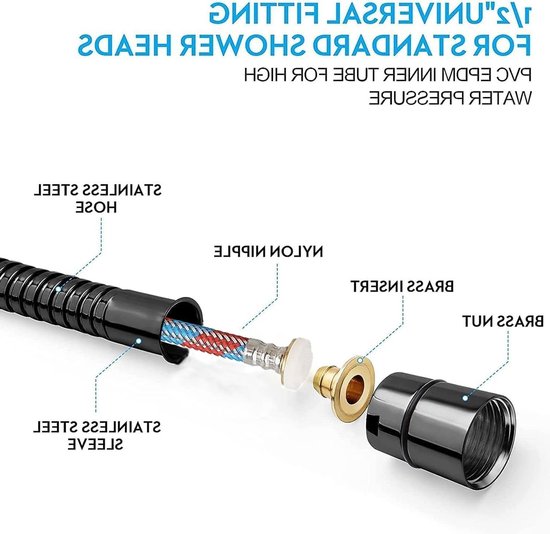 - Contenu de la livraison : pomme de douche, 4 pièces en coton PP, 4 joints économiseurs d'eau, tuyau de 1,5 m de long, support de douche