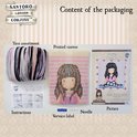 Kit de point de croix, motif grossier peint à la main: 100% coton, fil épais: 100% acrylique, 18 points / 10 cm, méthode en 8 langues, aiguille, photo, avec du fil pour les pompons,