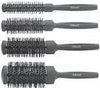Brosse thermique avec poils en nylon, manchon de brosse en tourmaline et manche «soft touch» La réflexion naturelle des ions donne encore plus de brillance aux cheveux. 100% antistatique. Ensemble de 4 brosses thermiques.