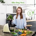 Anders à un presse-agrumes, le presse-agrumes presse les ingrédients à travers une vis à basse vitesse (80 tr/min). En pressant à basse vitesse, vous conservez la valeur nutritive de vos fruits et légumes. La structure cellulaire de toutes les vitamines, enzymes et minéraux reste intacte, de sorte que le jus a une durée de conservation plus longue. De cette façon, vous obtenez moins de mousse, plus de jus et une pulpe plus sèche. En pressant à basse vitesse, le jus ne chauffe pas et il y a moins d'oxydation qu'avec un presse-agrumes. De plus, les extracteurs de jus lents sont beaucoup plus silencieux que les extracteurs de jus (~70dB contre ~90dB). Tellement agréable le matin !