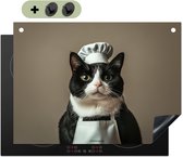 KitchenYeah® Protection plaque induction 57.6x51.6 cm - Chat - Vêtements de chef - Noir - Blanc - Protege plaque de cuisson - Couvre plaque induction - Protecteur d'induction - Cuisine