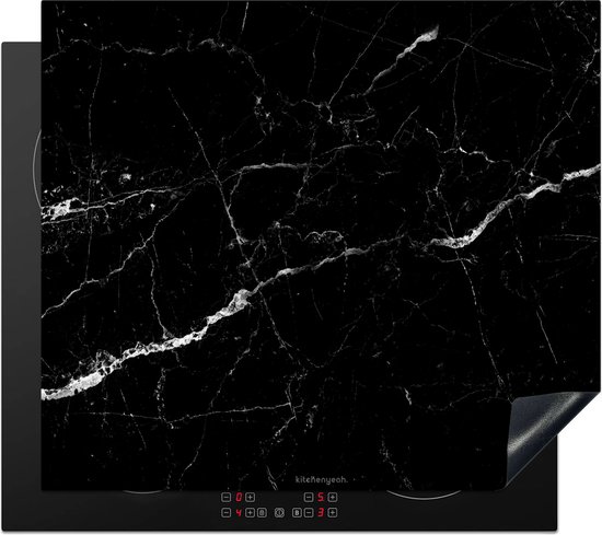 KitchenYeah® Protection plaque induction 58.3x51.3 cm - Noir - Blanc - Marbre - Protege plaque de cuisson - Couvre plaque induction - Protecteur d'induction - Cuisine