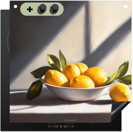 KitchenYeah® Protection plaque induction 60x55 cm - Citrons - Nature morte - Jaune - Protege plaque de cuisson - Couvre plaque induction - Protecteur d'induction - Cuisine