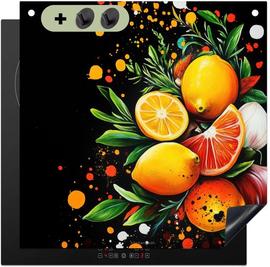 KitchenYeah® Protection plaque induction 60x55 cm - Noir - Citrons - Herbes - Graffiti - Peinture - Protege plaque de cuisson - Couvre plaque induction - Protecteur d'induction - Cuisine