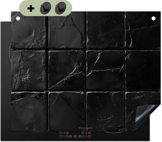 KitchenYeah® Protection plaque induction 65x55 cm - Noir - Carreaux - Pierre - Protege plaque de cuisson - Couvre plaque induction - Protecteur d'induction - Cuisine