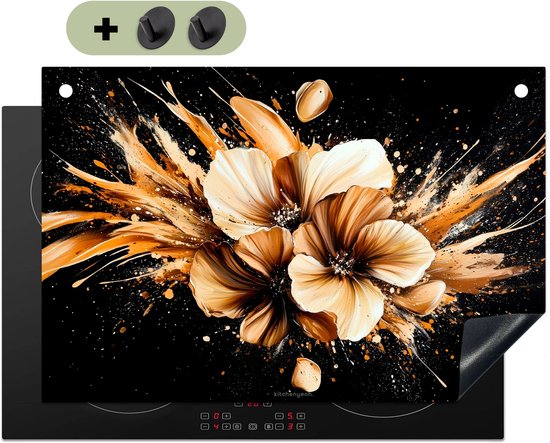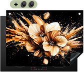 KitchenYeah® Protection plaque induction 76x51.5 cm - Bloemen - Goud - Graffiti - Zwart - Protege plaque de cuisson - Couvre plaque induction - Protecteur d'induction - Cuisine