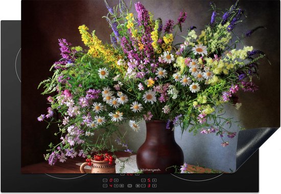 KitchenYeah® Protection plaque induction 77x51 cm - Nature morte - Bouquet - Fleurs - Protege plaque de cuisson - Couvre plaque induction - Protecteur d'induction - Cuisine