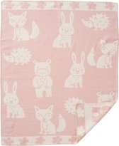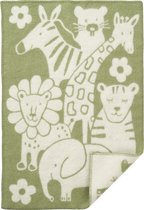 Une couverture en coton merveilleusement douce avec des animaux adorables souriants. La couverture est si douce car elle est en coton biologique brossé. En d’autres termes, du coton biologique durable qui a été doucement brossé, ce qui le rend très doux au toucher. La couverture est tissée en jacquard, faisant du recto une image miroir du verso.