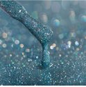 Vernis gel n°13DS : base transparente avec particules scintillantes bleues et argentées.