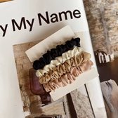 Élastiques en satin/ Silk - Noeuds Silky - Élastiques à cheveux en satin/élastiques à cheveux en Silk - 4 pièces - Couleur : Zwart / Wit /beige - Élastiques à cheveux sans plis - Sains pour vos cheveux - Chouchou moulant en Silk - Haute qualité