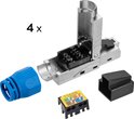 - Vous recevrez un jeu de 4 fiches RJ 45 avec décharge de traction et un boîtier métallique.
