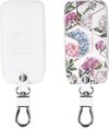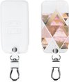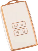 kwmobile étui à clés de voiture pour clé de voiture Renault Smartkey à 4 boutons (Keyless Go uniquement) - Étui en similicuir blanc / or rose - Design Don't Touch My Key