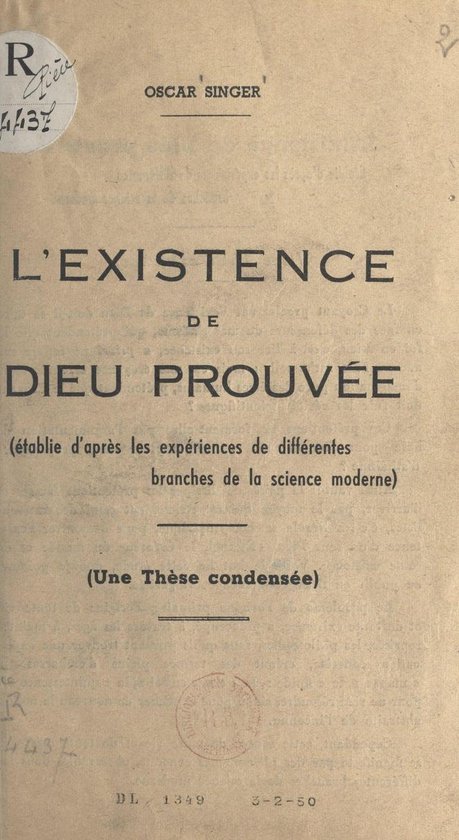 L'existence de Dieu prouvée Établie d'après les expériences de différentes branches de la science moderne. Une thèse condensée