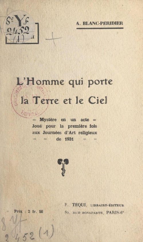 L'homme qui porte la Terre et le Ciel Mystère en un acte, joué pour la première fois aux Journées d'art religieux de 1931