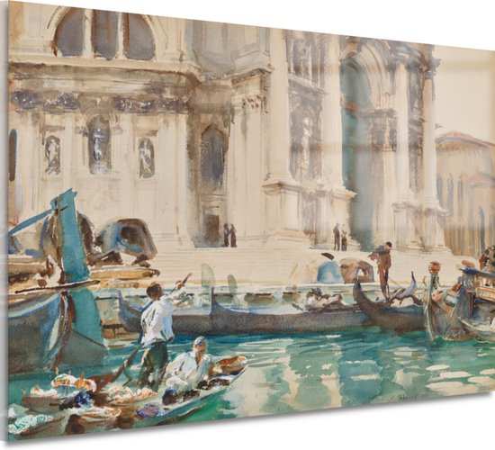 La façade de La Salute, Venetië - Peinture sur verre John Singer Sargent - Peintures de gondole sur verre - Peinture sur verre Maîtres anciens - Décoration murale moderne - Peinture sur plexiglas - Accessoires de chambre verre acrylique 105x70 cm