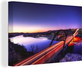 La rivière Trinity avec en arrière-plan les immenses bâtiments de Dallas en soirée Toile 90x60 cm - Tirage photo sur toile (Décoration murale salon / chambre)