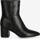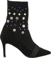 Cette bottine au talon haut de 8 centimètres est la botte de party par excellence pour cet hiver. La chaussure est entièrement noire et le talon est orné de pierres. Ce détail subtil en fait une chaussure élégante, la rendant magnifique sous une robe ou une jupe. Le talon haut permet de gagner facilement quelques centimètres. Sentez-vous sexy et féminine dans ces bottines.