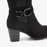 Cette botte noire pour femme est un choix élégant pour les femmes à la recherche d'une chaussure stylée et intemporelle avec une touche de sophistication. La botte a un talon aiguille d'une hauteur de 6 centimètres, ce qui lui confère un look élancé et féminin. La botte est fabriquée dans un matériau de haute qualité et présente un design élégant qui se combine facilement avec différentes tenues. Que vous vous rendiez à une occasion formelle, une soirée ou simplement une journée au bureau, cette botte ajoutera une touche de classe à votre look.