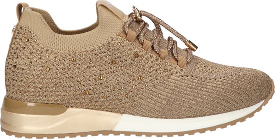 Cette sneaker dorée cool pour femme est à la fois confortable et élégante. Ce qui rend cette sneaker tendance vraiment unique, ce sont les belles pierres qui sont incorporées autour de la chaussure. Même la dentelle présente des pierres élégantes, ajoutant une touche subtile mais glamour. Grâce à la boucle d'enfilage pratique à l'arrière de la chaussure, vous pouvez entrer et sortir sans effort. De plus, vous pouvez facilement serrer le lacet grâce à la languette intelligente, afin que la chaussure s'adapte toujours parfaitement à votre cou-de-pied. Cette sneaker à enfiler dorée avec pierres est le choix parfait. Ajoutez cet accroche-regard à votre collection et soyez toujours élégant !