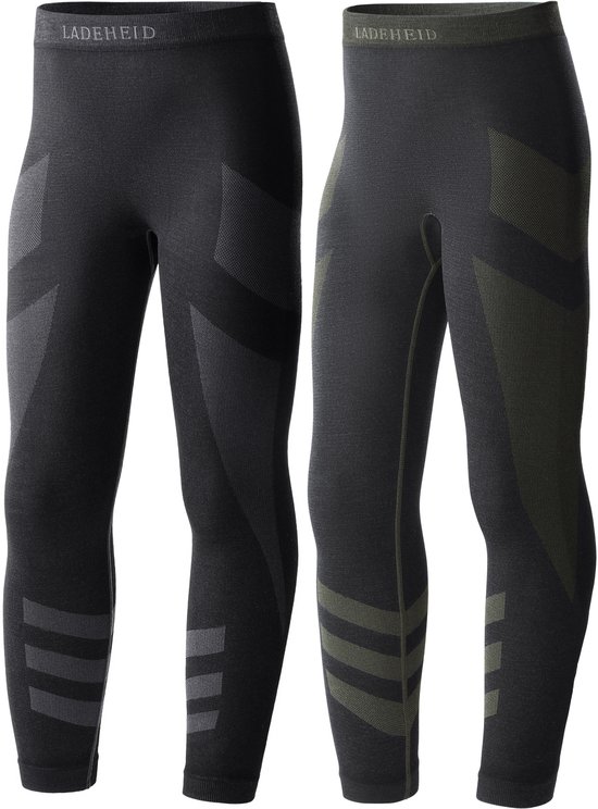 Ladeheid Thermobroek 2 Pack Set - Thermo ondergoed - Kinderen - Jongen - Meisjes – Grafiet/Kaki – 122-128 - LA-LA40-KIDS-Pants-2B