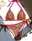 Bikini LaGloss®, ensemble bikini rétro, bikini coloré, bikini imprimé floral tropical, maillot de bain d'été, bikini de plage, bikini de piscine, bikini deux pièces, bikini dos nu, maillots de bain à la mode, bikini taille M, bikini polyester, bikini élasthanne, bikini féminin, bikini à bretelles réglables, bikini confortable, bikini durable, maillot de bain de plage, maillot de bain de plage, vêtements de plage LaGloss®, bikini tendance, bikini avec bretelle à nouer, coussinets de poitrine amovibles, ensemble bikini pour femme.