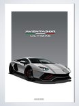 Lamborghini Aventador Ultimae Grijs Poster - Affiche voiture 70 x 50 cm | Chambre des enfants | Chambre à coucher | Bureau