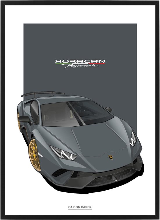 Lamborghini Huracan Grijs sur Poster - 50 x 70cm - Affiche de voiture Crèche / Chambre / Bureau