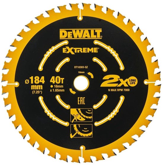Lame de scie circulaire DeWalt DT10303 Extreme - 184 x 16 x 40T - Bois (avec clous)