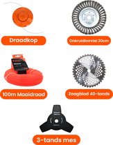 Tondeuse Kibani Edge 4-en-1 - Débroussailleuse Essence - Moteur 2 temps 52 cm3 / 1,9 CV - Incl. Brosse de désherbage, lame de scie à 40 dents, fil de coupe et kit de sécurité