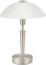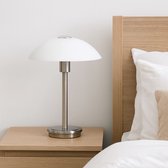 Lampe de table Touch Trendy , appartenant à la série de lampes de table 'Touch'. La plaque de base et la tige sont en bronze brossé. Cette lampe dispose d'un variateur « touch » à trois positions et est donc facile à utiliser. Il suffit de toucher la lampe et l'intensité lumineuse change. Il contient une ampoule ECO haute tension G9 de 33 watts.